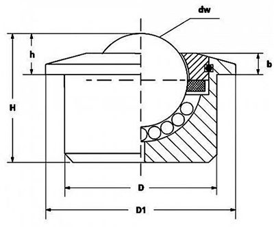 | Наименование | Артикул | Производитель | Тип | Вес, кг | h, мм | Диаметр шариков Dw, мм | Высота H, мм | D, мм | b, мм | D1, мм |