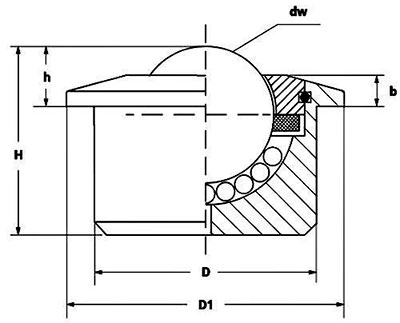 | Наименование | Артикул | Производитель | Тип | Вес, кг | h, мм | Диаметр шариков Dw, мм | Высота H, мм | D, мм | b, мм | D1, мм |