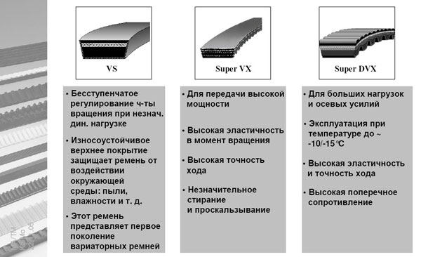 Основное назначение вариаторных ремней - бесступенчатое регулирование числа оборотов!